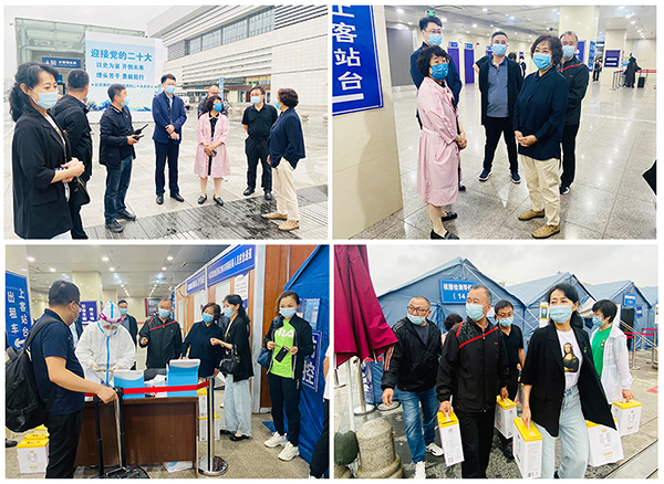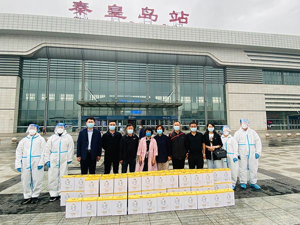 2022年6月8日智得醫療董事長,黨支部書記,護理部主任與海港醫院領導班子一行,到秦皇島火車站慰問在抗疫前線工作的醫護人員。