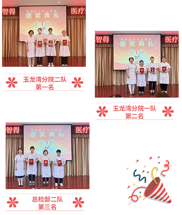 7月31日,智得醫(yī)療總檢部在十七年慶?;顒?dòng)中舉辦了智得體檢首次“醫(yī)療知識(shí)”競(jìng)賽活動(dòng),有四個(gè)代表隊(duì)共8支隊(duì)伍參加了激烈角逐,玉龍灣分院代表隊(duì)的兩支參賽隊(duì)包攬本次競(jìng)賽活動(dòng)的冠亞軍,總檢部有一支參賽隊(duì)獲得了第三名;她們用實(shí)力為這場(chǎng)“破冰之戰(zhàn)”寫下完美注腳!